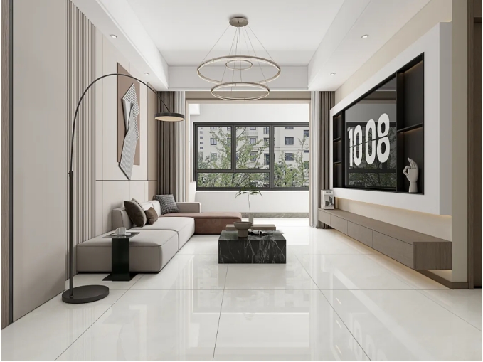 突破傳統瓷磚的二維表達,以三層納米釉料+全拋釉工藝,構築立體光感矩陣,經1280度高溫淬煉,凝結98度水晶光感,讓釉麵在